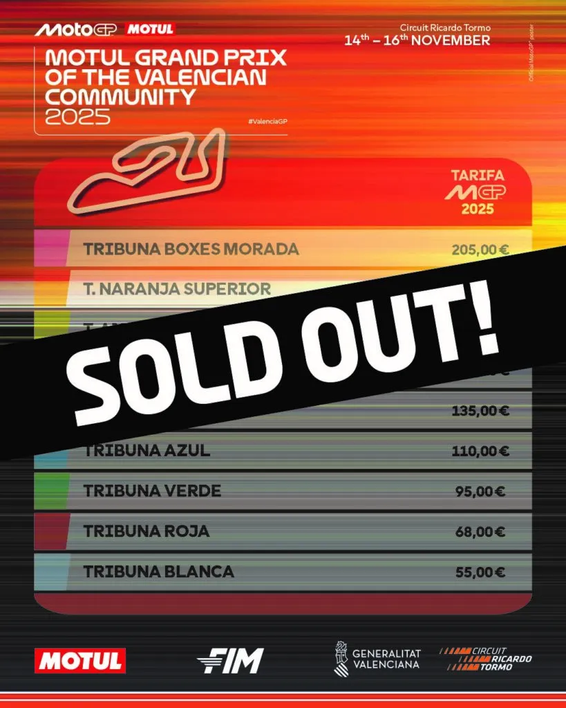 The Motul Comunitat Valenciana Grand Prix will return to the Valencia circuit after a year without the most important event on the calendar of the Circuit Ricardo Tormo. Most of the fans took advantage of the opportunity and kept their 2024 tickets, which will be valid in 2025. This way, the number of tickets on sale is much smaller, around 20,000.